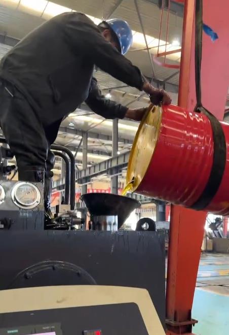 文中介紹是一款630噸三梁四柱液壓機(jī),采用雙缸結(jié)構(gòu)設(shè)計(jì),其工作原理是油泵的液壓油到集成插裝閥塊,通過各種分布的止回閥和安全閥的液壓油缸下腔室或在高壓作用下油,油缸運(yùn)動。根據(jù)630噸四柱液壓機(jī)(三梁|雙缸)的工作原理我們知道,液壓油是機(jī)器運(yùn)行不可或缺的部分,那么,使用630噸液壓機(jī)選用哪種液壓油呢?使用前,又需要加多少液壓油呢?