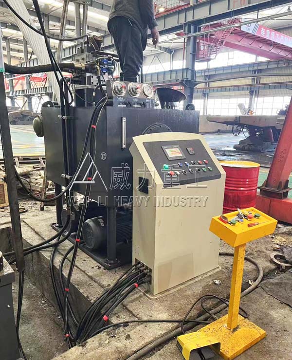 630噸三梁四柱液壓機(jī)正在加液壓油