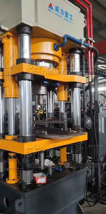 1、六角啞鈴頭成型液壓機400噸1000T1800噸配重塊熱壓機采用四柱導向,定位精準,且結構緊湊,占地面積小,運輸及轉(zhuǎn)運成本低;